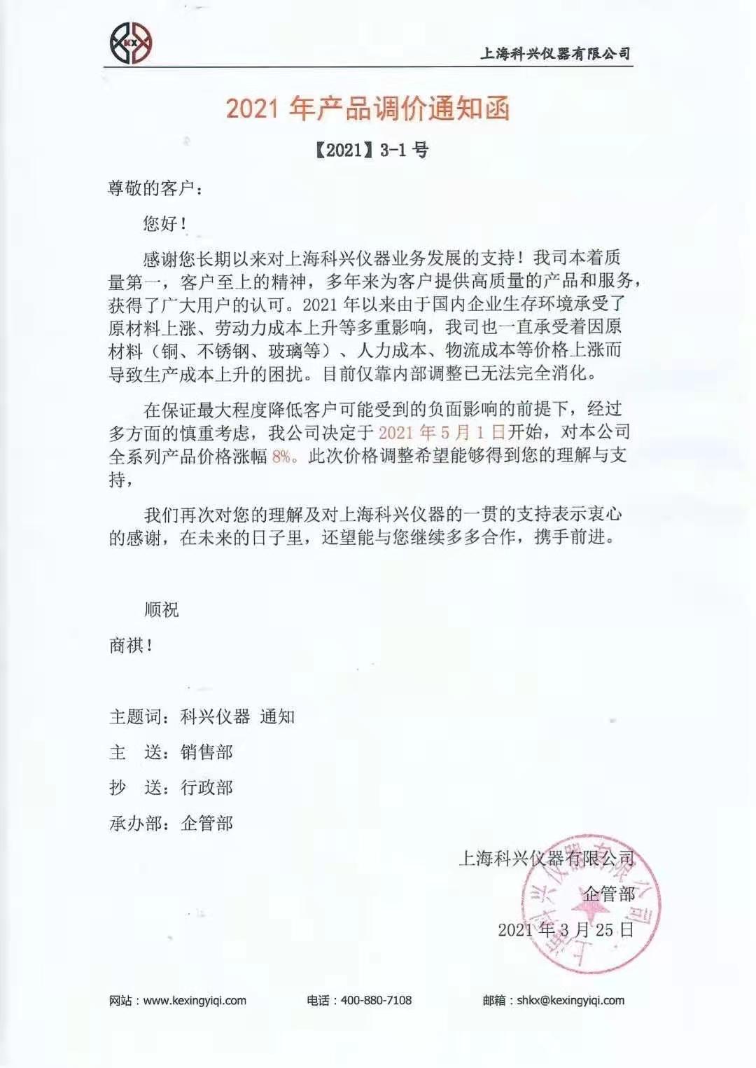 2021年產(chǎn)品調(diào)價(jià)通知