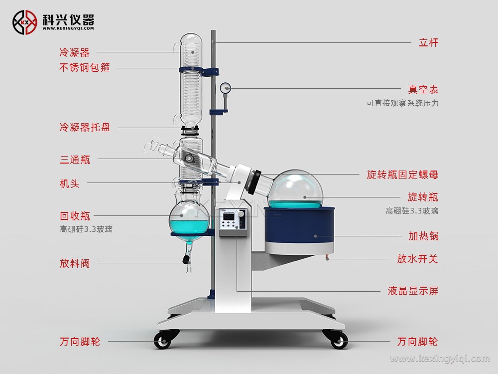 旋轉(zhuǎn)蒸發(fā)儀主要用于醫(yī)藥、化工和生物制藥等行業(yè)的食品等領(lǐng)域的中試,進(jìn)行濃縮、結(jié)晶、干燥、分離及溶媒回收。有大容量、大口徑旋轉(zhuǎn)蒸發(fā)瓶,置于水浴中,邊旋轉(zhuǎn)邊加熱,使溶液高效擴散蒸發(fā)。產(chǎn)品可與循環(huán)水式多用真空泵、隔膜真空泵、低溫循環(huán)(真空)泵,循環(huán)冷卻器,恒溫循環(huán)器,低溫冷卻液循環(huán)泵等配套組成系統(tǒng)裝置。其原理為在真空條件下,恒溫加熱,使旋轉(zhuǎn)瓶恒速旋轉(zhuǎn),物料在瓶壁形成大面積薄膜,高效蒸發(fā)。溶媒蒸氣經(jīng)高效玻璃冷凝器冷卻,回收于收集瓶中,大大提高蒸發(fā)效率。特別適用對高溫容易分解變性的生物制品的濃縮提純。